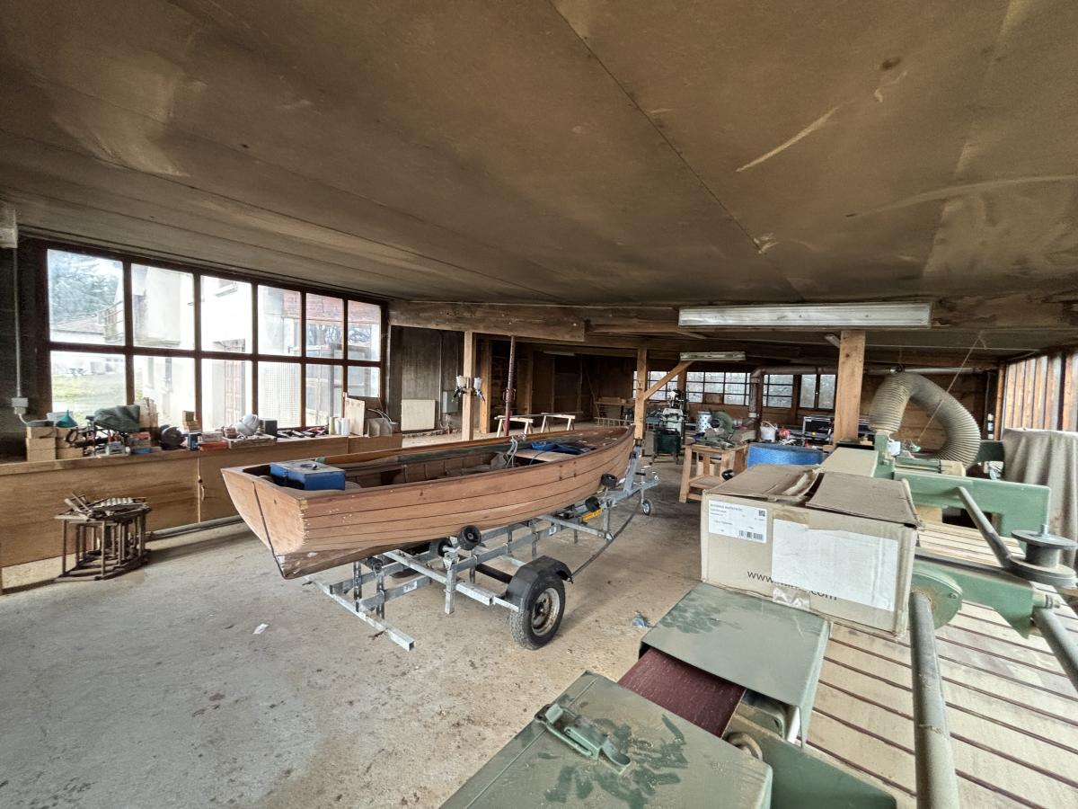 La partie atelier est attenante à l'habitation, elle offre une surface d'environ 190 m² ainsi qu'une autre partie de construction légère d'environ 40 m².
